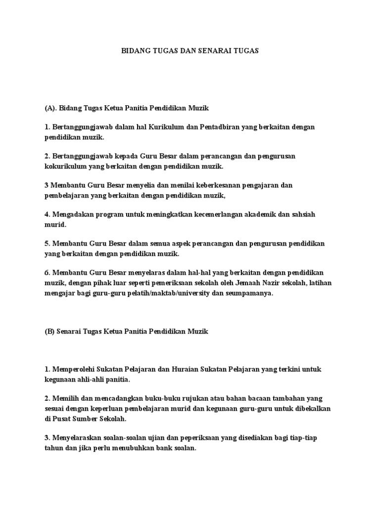 Bidang Tugas Dan Senarai Tugas Guru Muzik Pdf