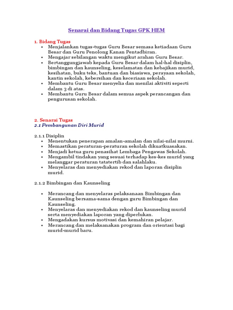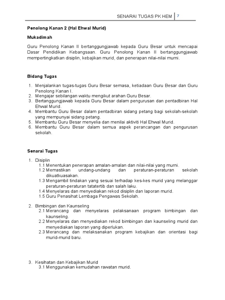 Senarai Tugas Penolong Kanan Hem Pdf