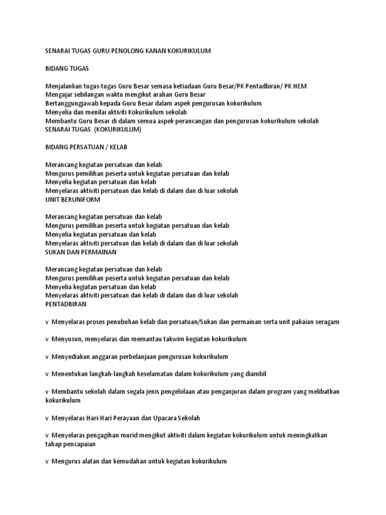 Senarai Tugas Guru Penolong Kanan Kokurikulum Pdf